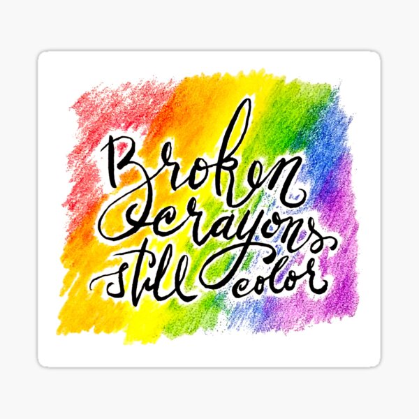 If you put tape around two pieces of a broken crayon you still know its broken and its weak where the tape is covering it up. Broken crayons still color crayons broken Jul 23rd 2019 1106493. Up to 8 cash back Unique Broken Crayons Still Color Tattoo stickers featuring millions of original designs created and sold by independent artists.